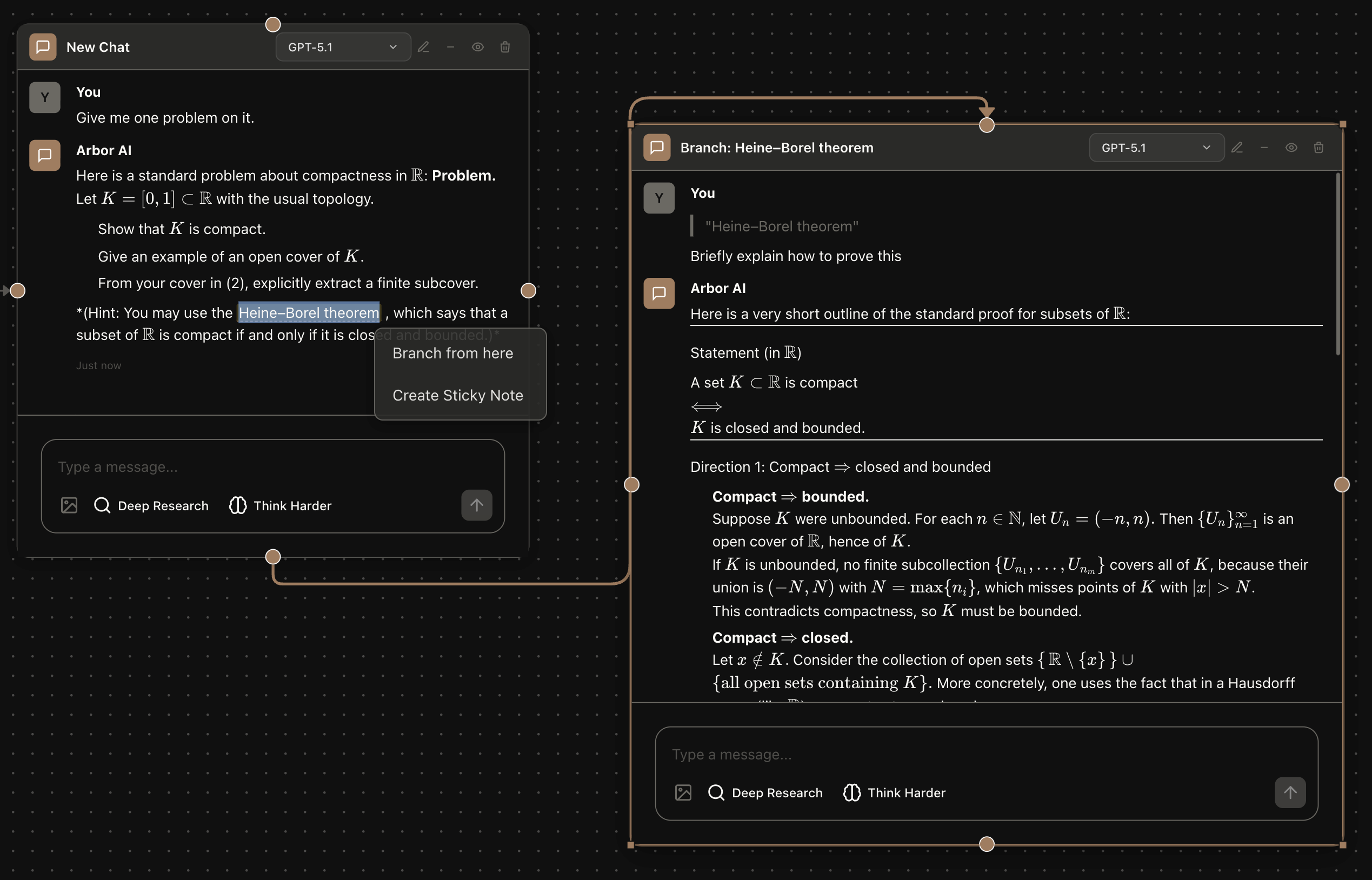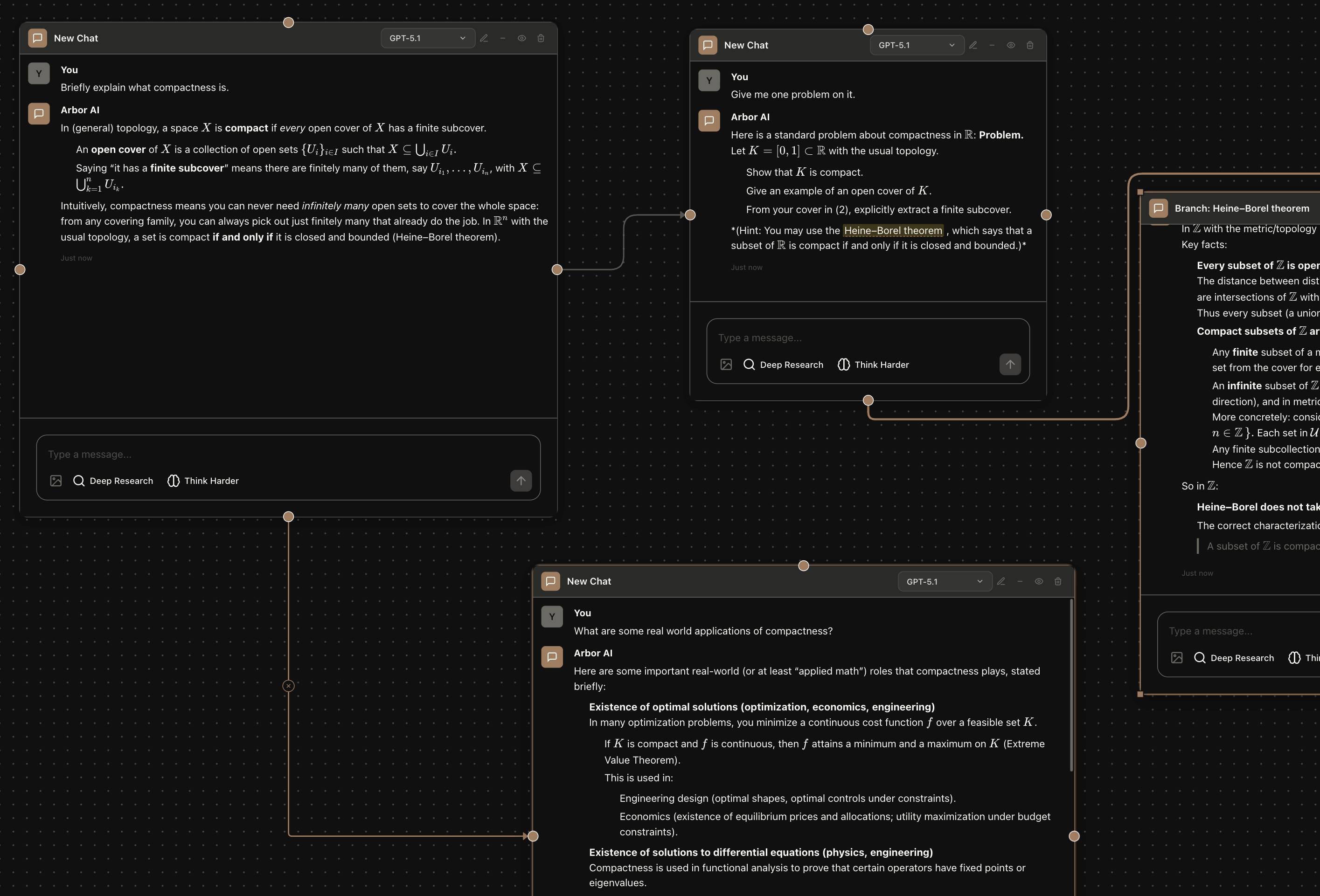 Highlight any text in a conversation and branch into a new thread. Explore different directions without losing your original context.